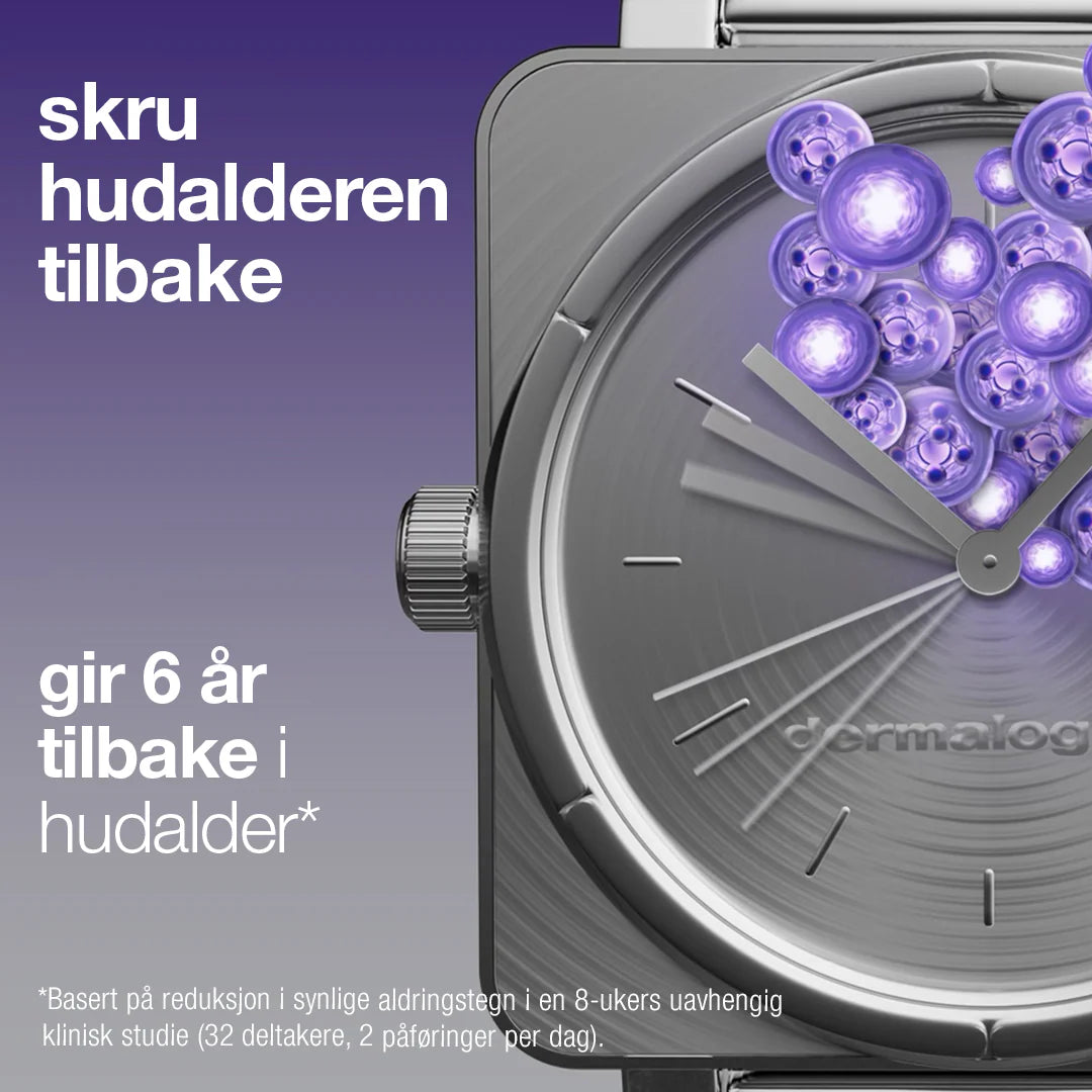 Fornyende daglig leave-on peeling med eksosomer som skrur hudalderen 6 år tilbake - basert på en 8-ukers uavhengig klinisk studie med 32 deltakere, 2 påføringer per dag.