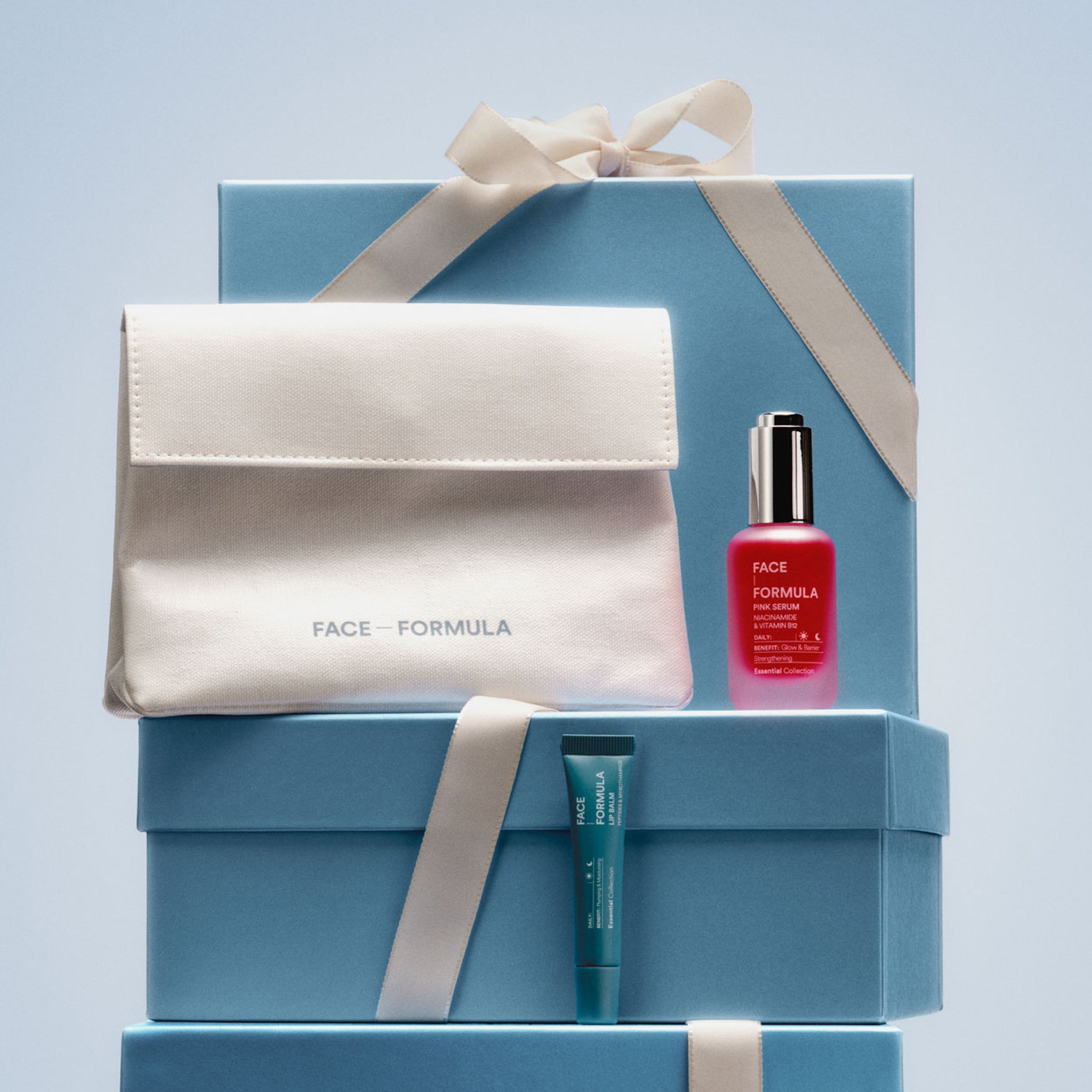 Populær julegave med stjerneproduktet Pink Serum, leppefavoritten Peptalk Lip Balm og deres limited edition toalettmappe.