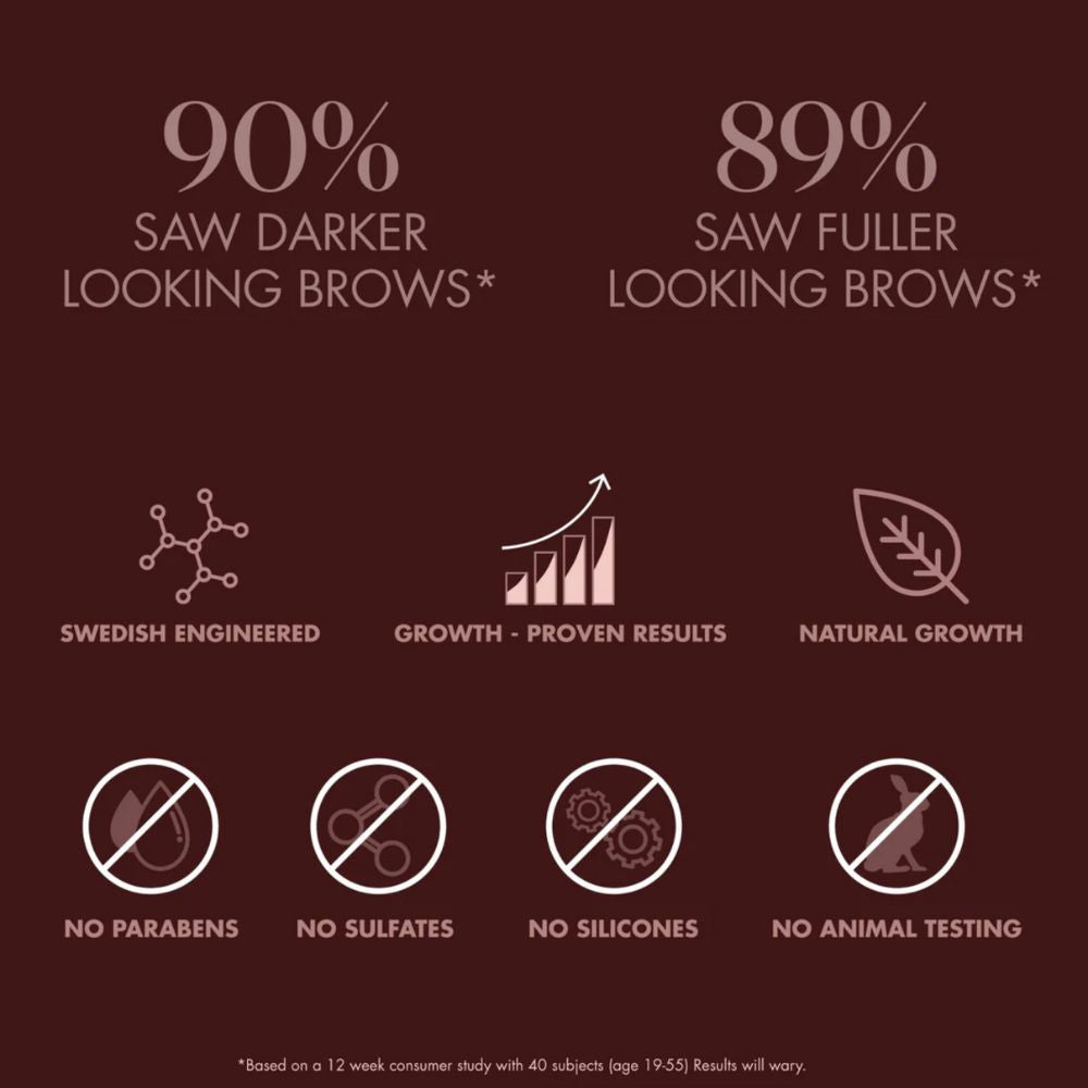 Serumet er laget med en moderne formel som bygger på kjent forskning, for å gi deg sunne og veldefinerte øyenbryn. Fordi huden ved øyenbrynene er tykkere enn ved øyevippene, kan det derfor ta litt lengre tid før serumet virker på brynene enn på vippene.