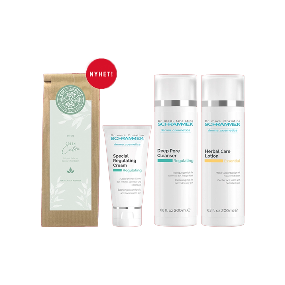 Skap balanse og renhet med Dr. Schrammeks Regulating Care Set – et komplett gavekit for deg som vil ha frisk, klar og harmonisk hud. Verdi kr. 1929,-
