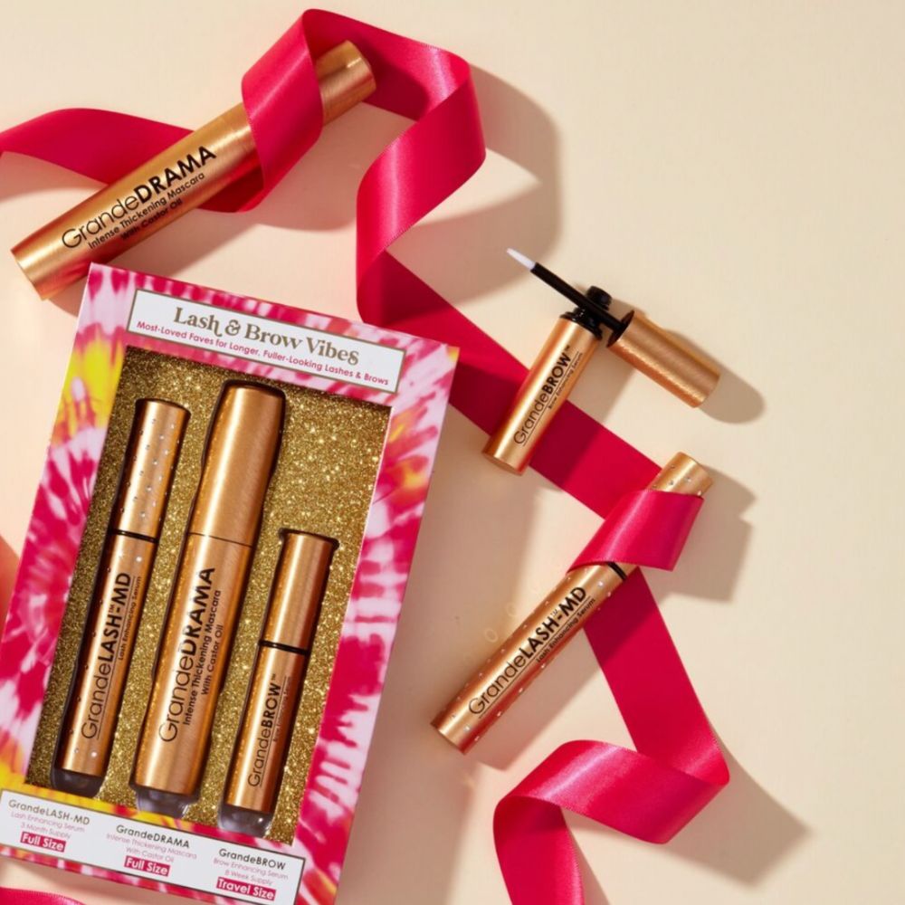 3 produkter i gavesett: Full size GrandeLASH-MD, full size GrandeDRAMA mascara og GrandeBROW travel size.