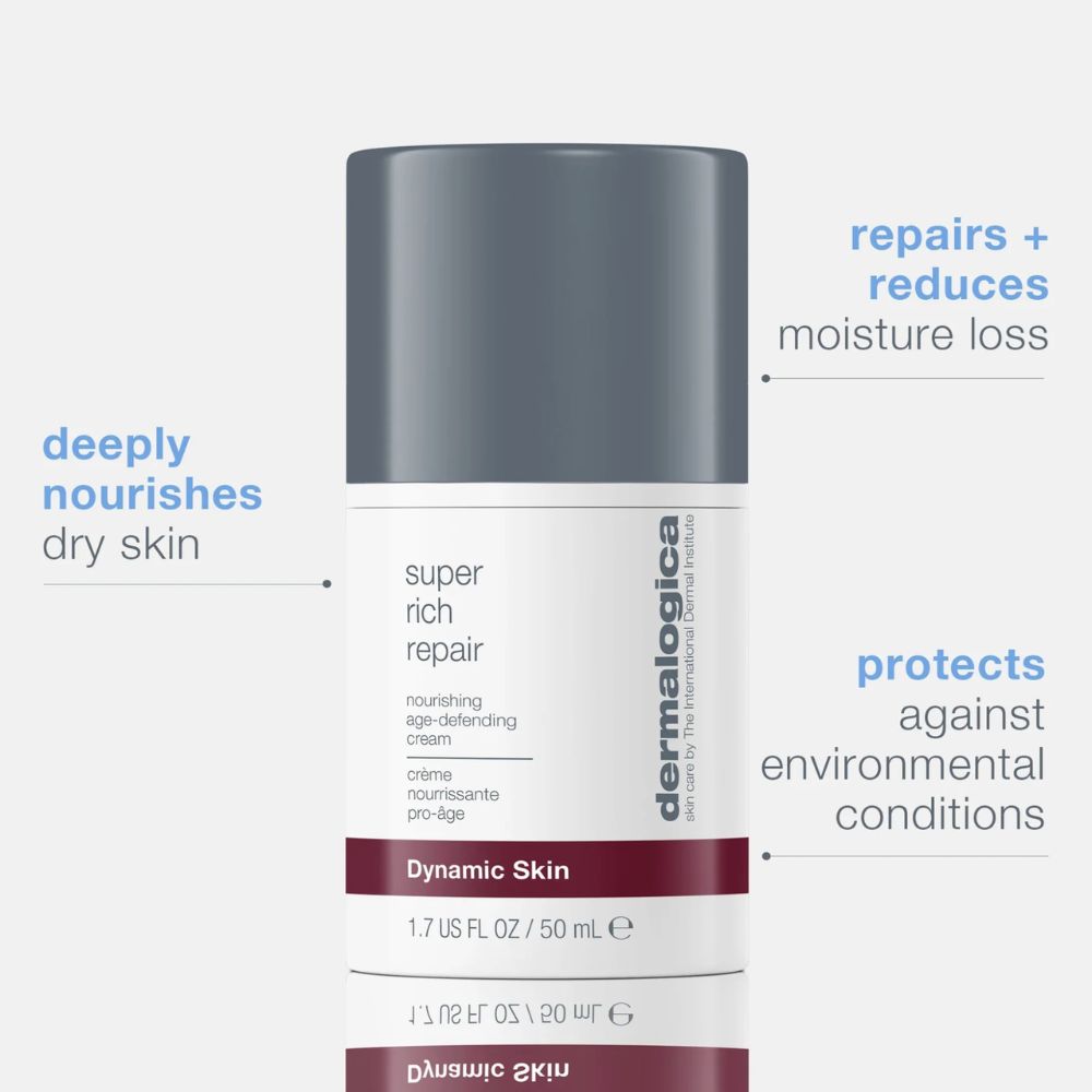 Super Rich Repair fra Dermalogica er en rik og nærende krem som hjelper en kronisk tørr, dehydrert og for tidlig aldret hud.