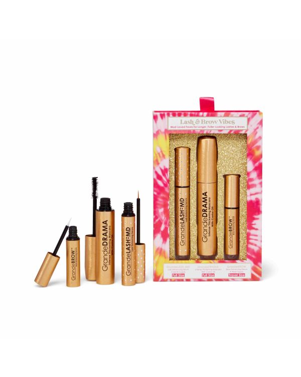 Dette verdifulle 3-delte settet inneholder alt du trenger for en legendarisk sjefslook! Fullsize GrandeLASH-MD Lash Enhancing vippeserum som gir naturlig lengre fyldigere vipper, en fullsize GrandDRAMA Intense Thickening Mascara med ricinusolje for å hjelpe til med å gjøre vippene tykkere og mer næringsrike, samt en reisestørrelse GrandeBROW Brow Enhancing Serum for å fremme naturlig, fyldigere bryn.