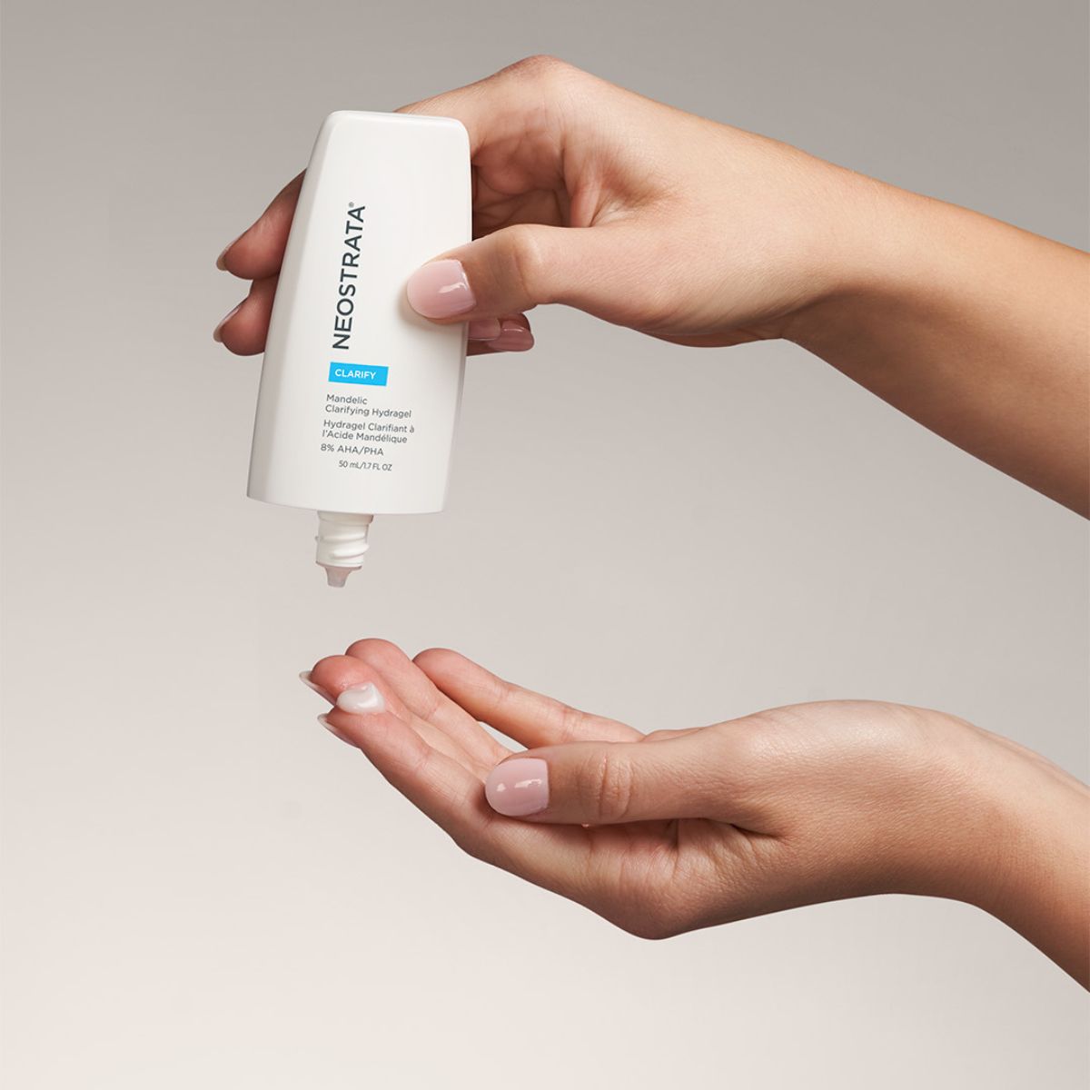 Clarify-serien består av produkter for kombinert, fet og/eller akneutsatt hud. Produktene inneholder AHA, PHA og talgregulerende ingredienser, som sammen eksfolierer og rengjør i dybden uten å tørke ut huden. Regelmessig bruk forbedrer hudstrukturen og motvirker tilstoppede porer som kan gi akne og hudormer.