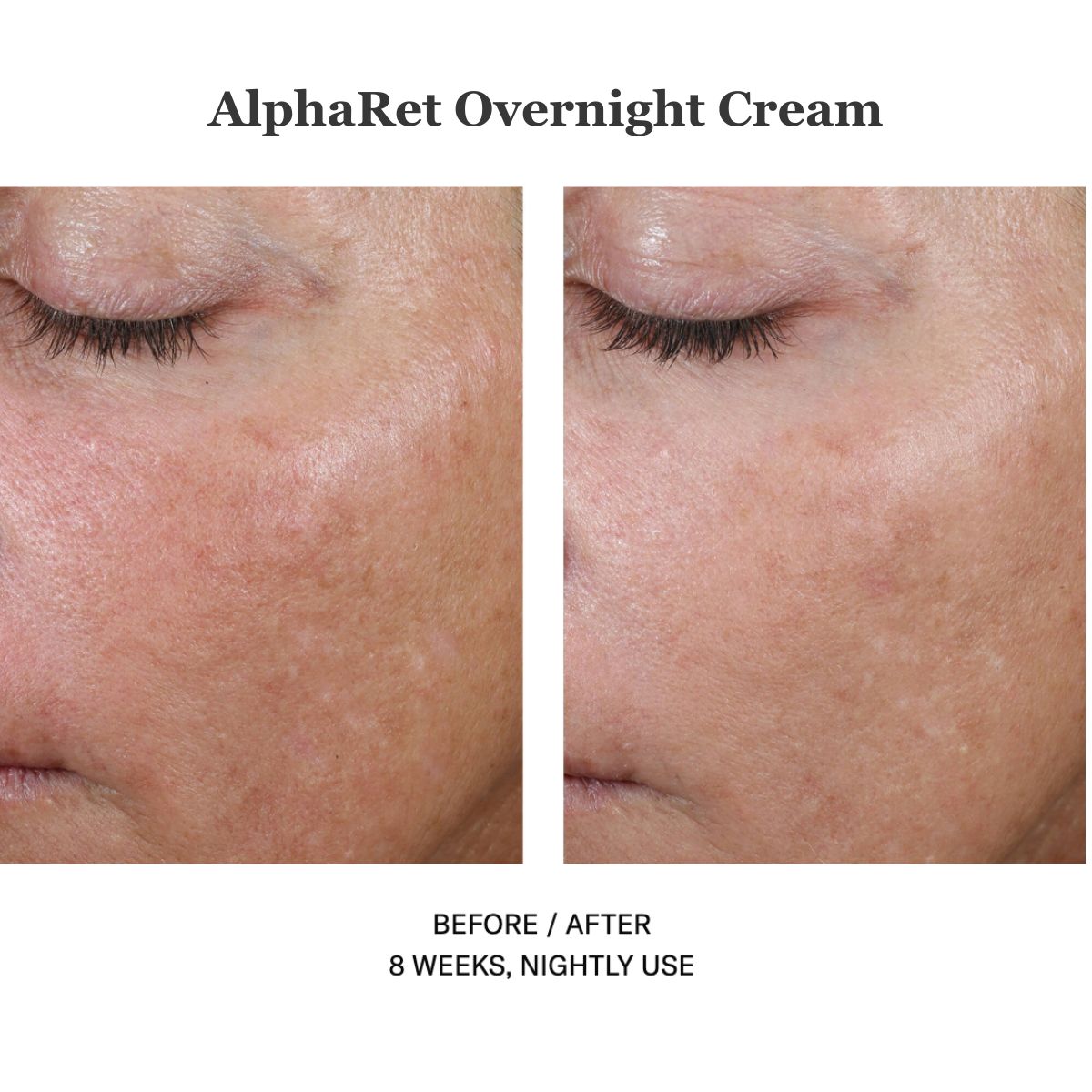 Alpharet Overnight Cream er en effektiv nattkrem som reduserer synlige linjer, rynker og ujevn hudstruktur mens du sover. Formelen inneholder den unike AlphaRet®-teknologien, en konjugatkombinasjon av alfahydroksysyre (AHA) og retinoid, som gir intens hudfornyelse med minimalt ubehag eller irritasjon. Glykolsyre hjelper til med å jevne hudoverflaten og øke effekten av AlphaRet®. Kremen inneholder også en kraftfull blanding av peptider som støtter kollagenproduksjon, antioksidanter som beskytter mot frie radikaler, samt en trio av beroligende ingredienser som bidrar til å holde huden i balanse. Den fuktighetsgivende formelen forbedrer hudens elastisitet og etterlater huden myk, glatt og strålende. Synlige forbedringer kan forventes ved jevnlig bruk over ca. fire uker.